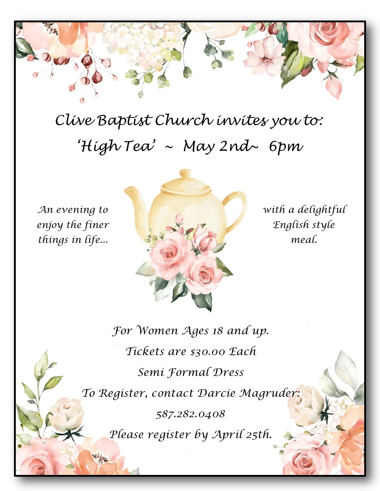 For more information or to RSVP for special events, speak to Darcie Magruder. 587-282-0408